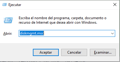 Paso 2. Introduzca diskmgmt.msc → Aceptar.