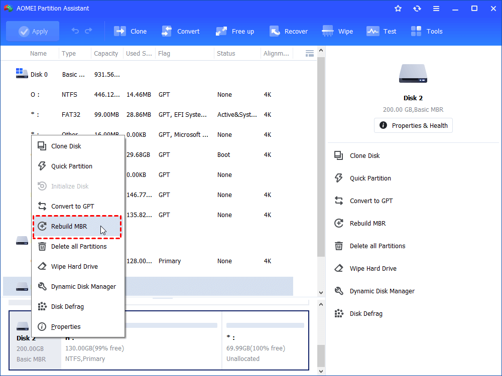 Si el problema es causado por MBR dañado, puede reconstruir MBR en la unidad WD con una utilidad potente-AOMEI Partition Assistant Professional. Es compatible con todos los sistemas operativos Windows PC como Windows 11/10/8.1/8/7/Vista/XP. Siga los siguientes pasos para arreglar "Disco 1 Desconocido, Sin Inicializar" Western Digital: