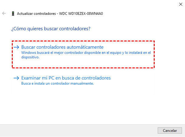 Paso 4. Si Windows no encuentra un nuevo controlador, puede intentar buscar uno en el sitio web del fabricante del disco duro y seguir sus instrucciones.