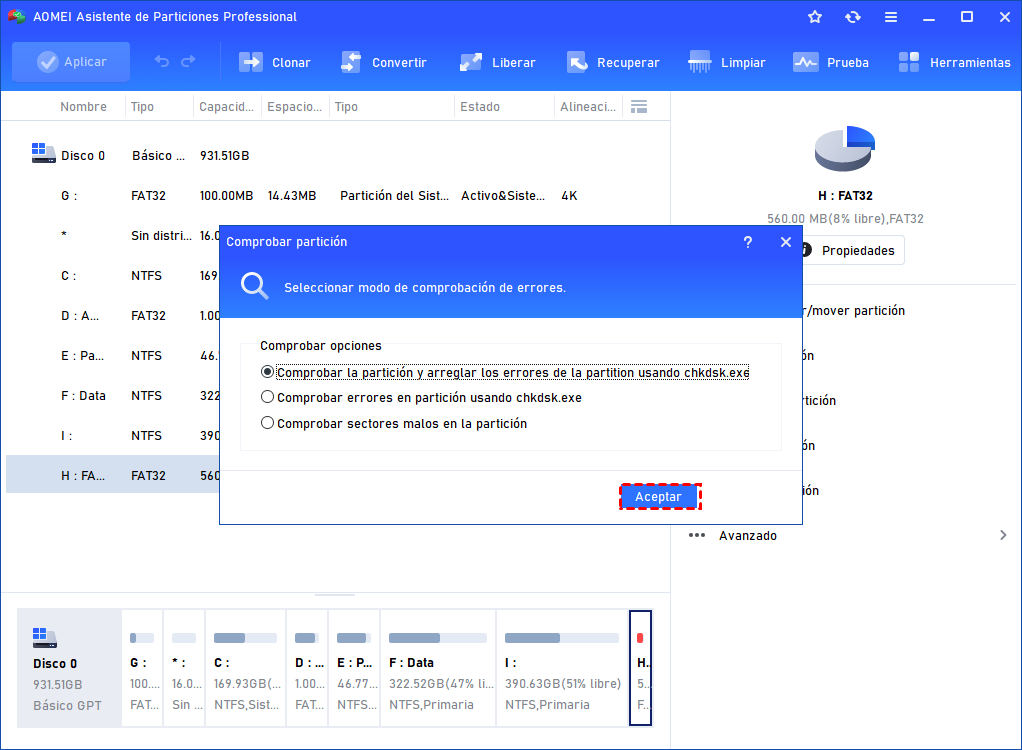 Además de los métodos mencionados anteriormente, también puede recurrir a un programa de reparación de SSD de terceros como AOMEI Partition Assistant Professional. Es una herramienta de administración de particiones que puede ayudar a reparar y solucionar algunos problemas relacionados con discos duros, tiene algunas funciones útiles para resolver problemas a nivel de software y particiones que pueden ayudar en la reparación o recuperación de un SSD.