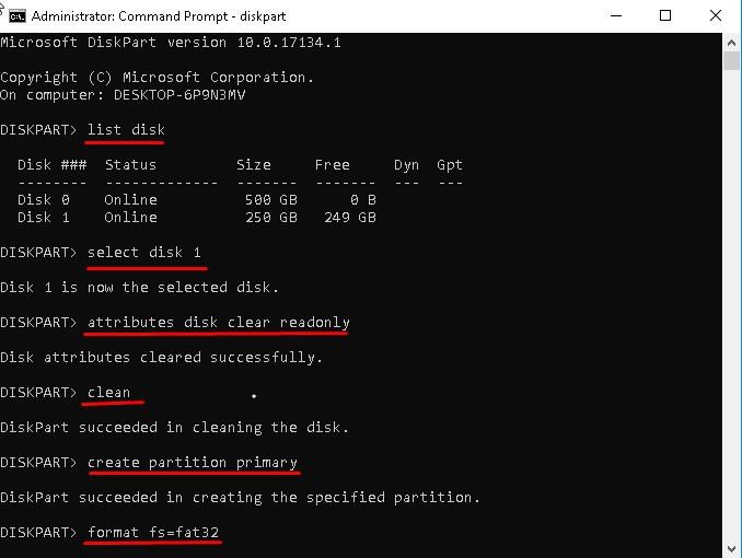 Solución 7: Eliminar la protección contra escritura a través de DiskPart