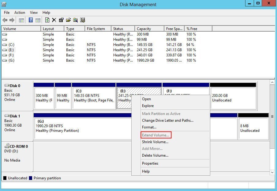 Extender Partición con Espacio No Asignado en Windows Server 2012 (R2)