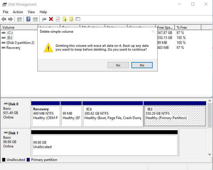 En la ventana emergente, se te pedirá que te asegures nuevamente de que los datos de esta partición estén respaldados. Haz clic en “Sí” si estás listo.