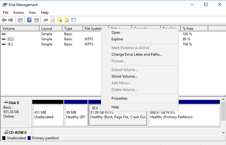 Ahora la partición es un espacio no asignado, y la opción “Extender volumen” de la unidad C está disponible.