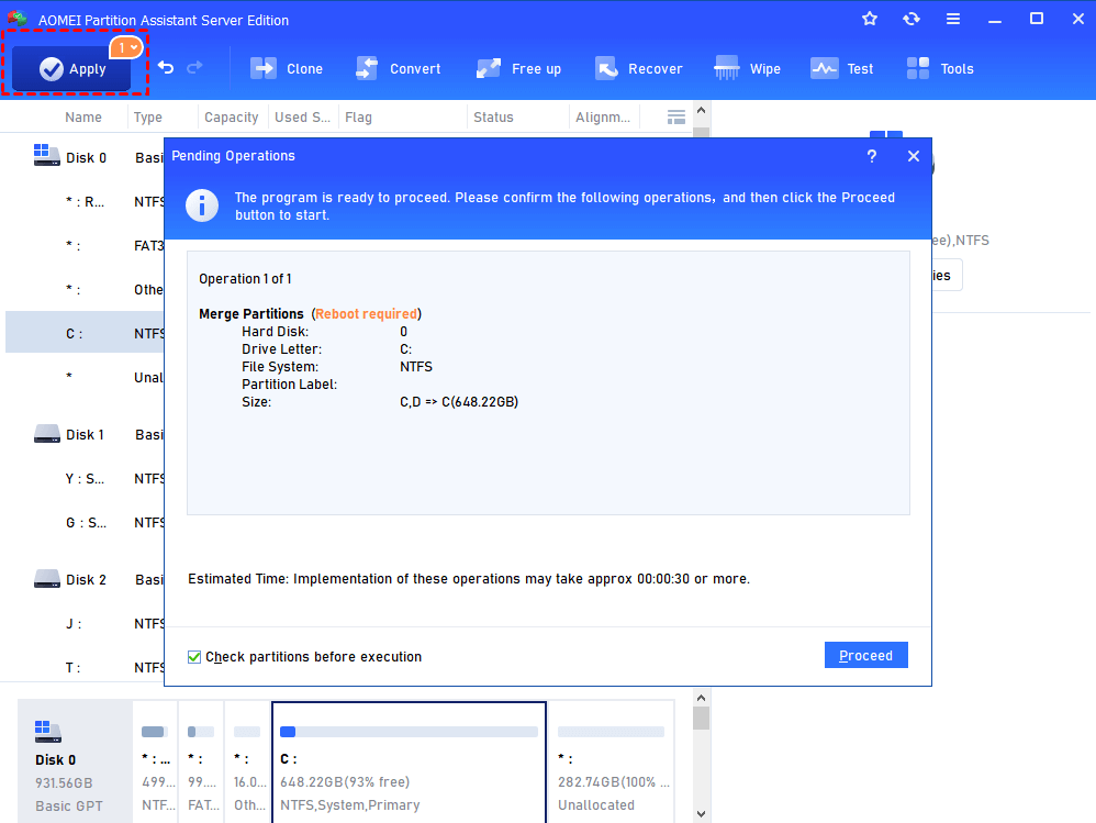 Ahora, instala y ejecuta el Asistente de Particiones AOMEI para Servidor en tu máquina y sigue los pasos sobre cómo fusiona dos particiones: unidad C y unidad D en Windows Server. ¡Puedes descargar su versión de demostración para probarlo!