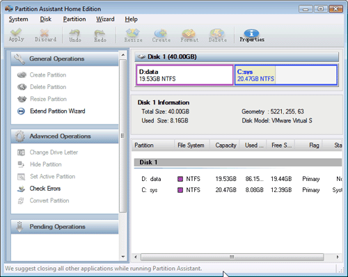 You may click on the link below to know more features: Partition Assistant. From this beginning, you could be well felt instead of daze in an emergence of low disk space, as well as layout disorder. Only a few steps of simple operation like extend partition taking on the hard risk to realize partition management through Partition Assistant Standard Edition can resolve risk in disk and keep your laptop steady-going. Anyway, Mail us when you encounter problems on partition manage ([email protected]).