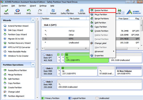 Considering those inconveniences with Active Partition Manager, you need to have an alternative to help you. Here, we recommend you free partition manager, AOMEI Partition Assistant Standard. It supports all the partition management features you’d expect from a program like this, most importantly, you are able to resize the locked partition with it.