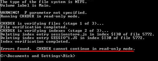 “I’d like to run CHKDSK on my external drive since I was prompted to when trying backup Windows 7 to that disk. However, when I type CHKDSK F: /f in CMD with administrative privileges, only to get this return message: This type of file system is NTFS. Errors found. CHKDSK cannot continue in read-only mode. What should I do to get out of that mode and get CHKDSK run successfully? Any advice will be appreciated.”