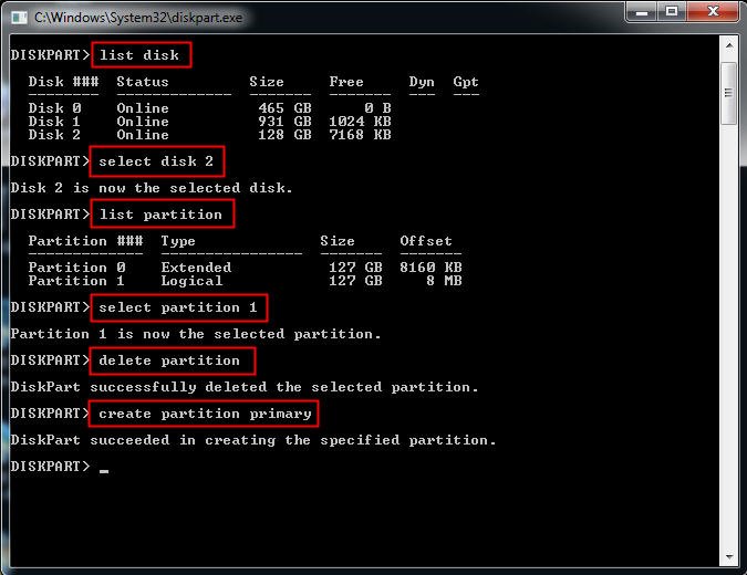 How to convert logical partition to primary using Diskpart (DATA LOSS)