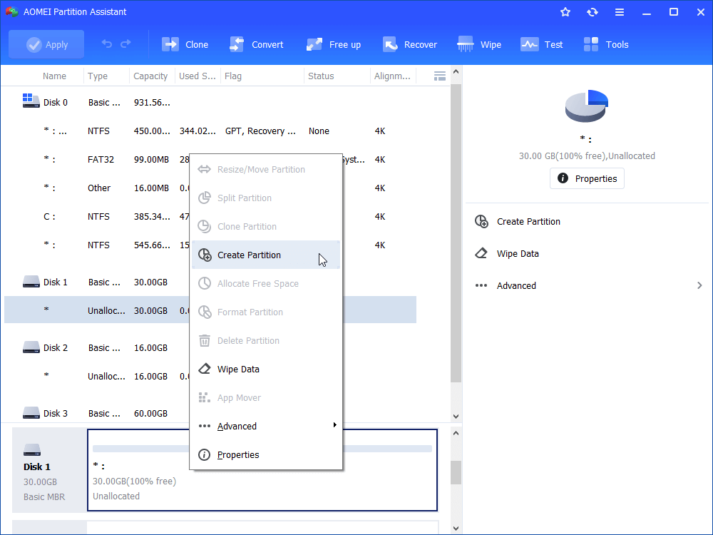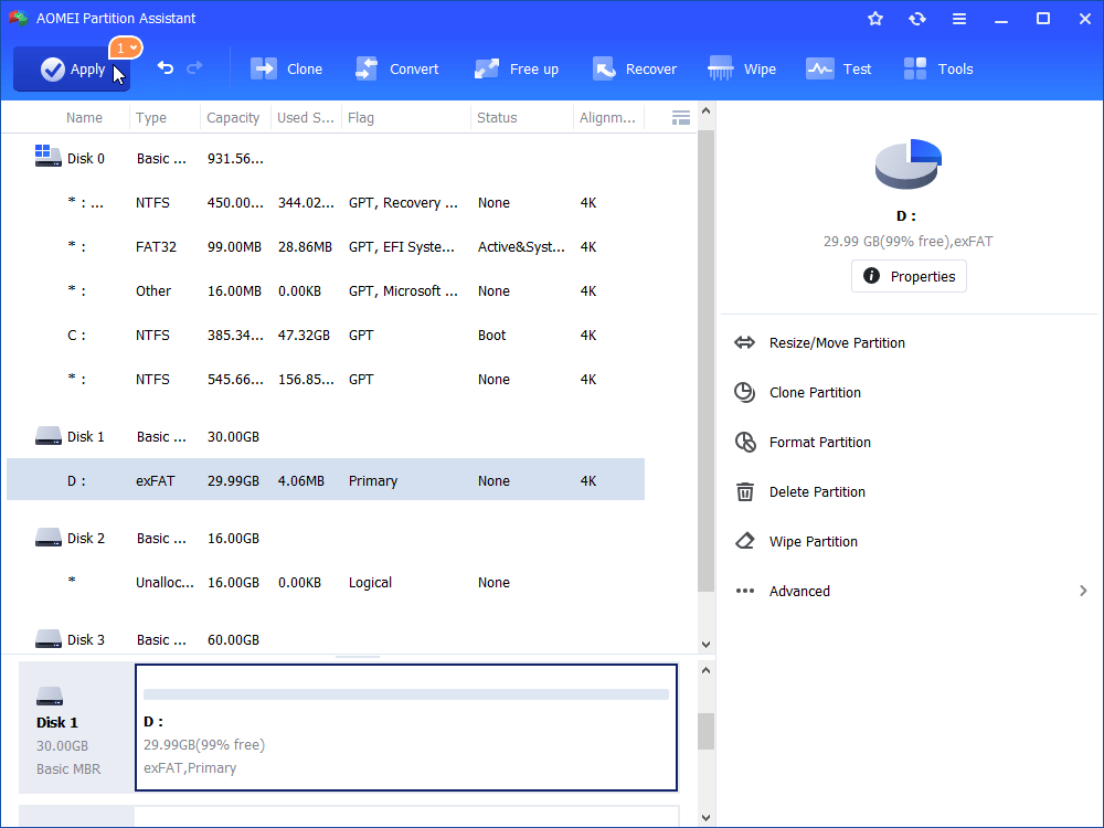 With AOMEI Partition Assistant, things would become easier. Here are the detailed steps of how to create and format exFAT partition.