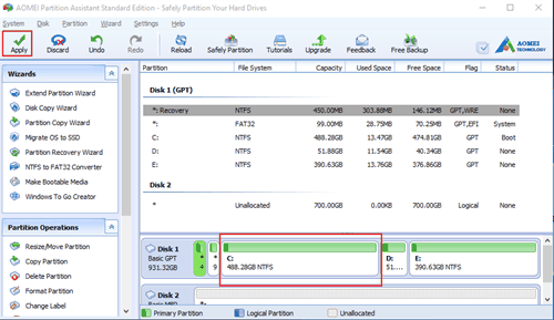 As you see, AOMEI Partition Assistant Standard is so convenient to extend C drive. It also allows you to copy partition, format partition, convert NTFS to FAT32 without data loss, and so on. If you upgrade it to Professional version, you can enjoy more functions, such as migrating OS to GPT disk and converting MBR system disk into GPT.
