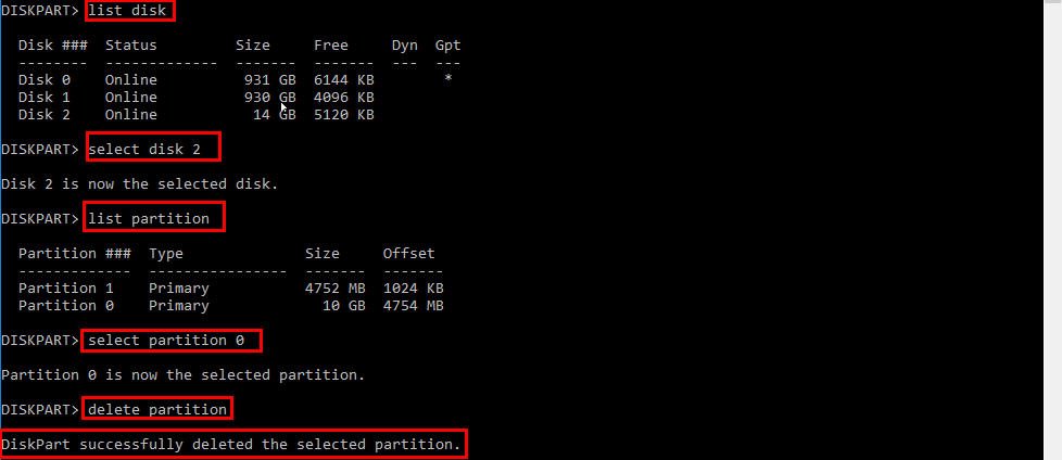 Step 3. After you see Diskpart successfully deleted the selected partition, type "exit", and hit Enter to close this program.