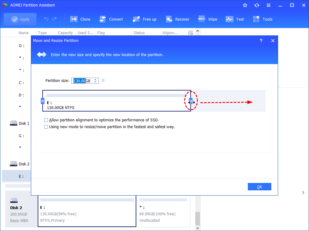 AOMEI software has provided different ways to enlarge a partition, you could choose one as your needs, let's see the two most commonly used methods in detail.