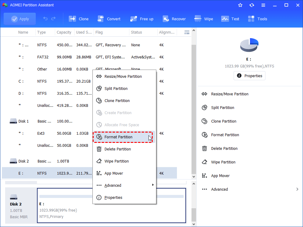 Compared with other third-party FAT32 format software, here I highly recommend the best FAT32 format software that holds a very intuitive GUI - the AOMEI Partition Assistant many powerful functions like format partition. This tool can break the limitations of Windows built-in tool and it allows you to specify allocation unit size as required.