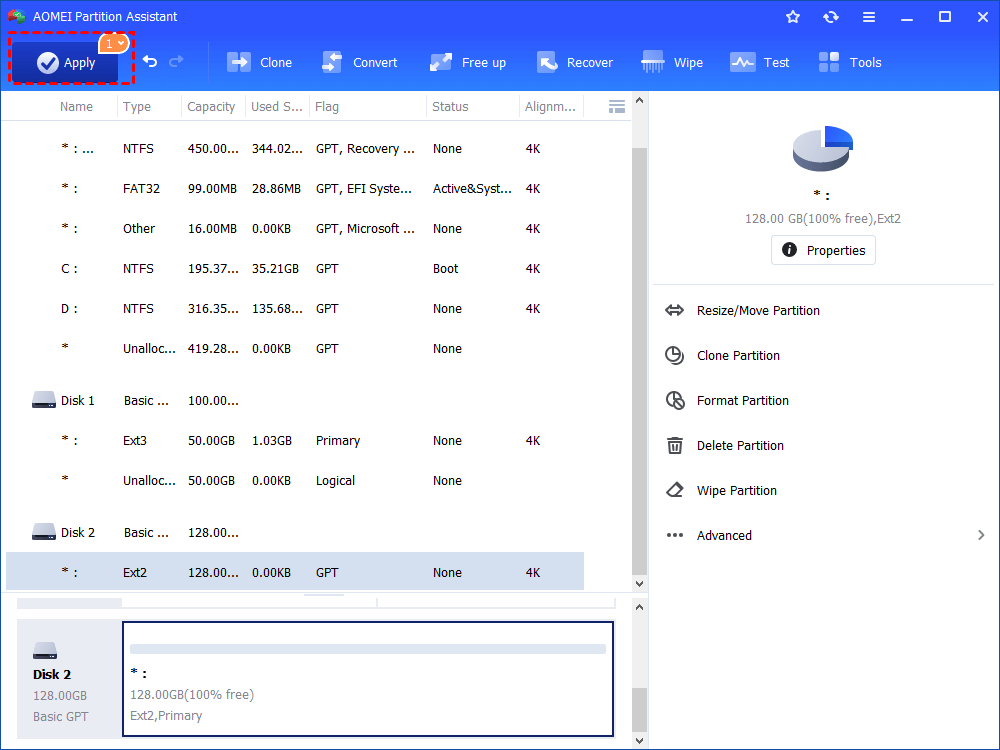 Therefore, to format hard drive to Linux file system on Windows computer, the traditional way is to boot your computer using a Linux based live CD and create Ext2/3/4 partitions from there. Sounds troublesome and time-consuming, right? Luckily, there is a free partition manager called AOMEI Partition Assistant Standard that can help format drive to Ext2, Ext3 or Ext4 on all editions of Windows 10, Windows 8, Windows 7, Windows XP and Vista.