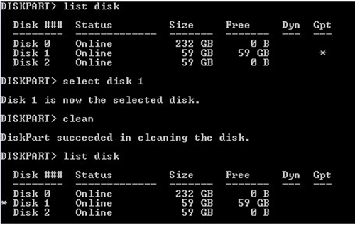 4. Input “list disk” and hit “ENTER”.