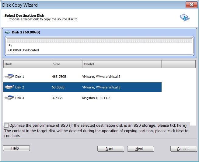 Step 3. Select the destination disk to store the data on the source disk, and then click "Next".