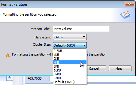 AOMEI Partition Assistant Standard is powerful partition manager that is suitable for both computer novice and experts. It allows you to format Intenso USB drive to NTFS, FAT32, Ext2, Ext3, or Ext4 in user-friendly interface. 7 types of Cluster Size are available. Free download it and have a try.