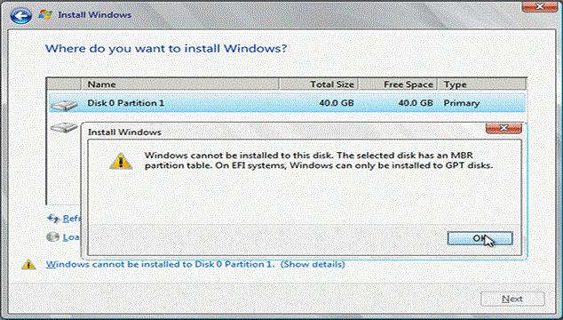 Sometimes, users would like to convert MBR disk to GPT for different purposes. For example, when you install Windows 8, you may encounter an error that stated: "Windows cannot be installed to this disk. The selected disk has an MBR partition table. On EFI system, Windows can only be installed to GPT disks." This could happen not only in Windows 8, but also in Windows 7, Windows 10, Windows 11, and Windows Server 2008, 2008 R2.