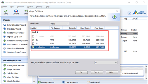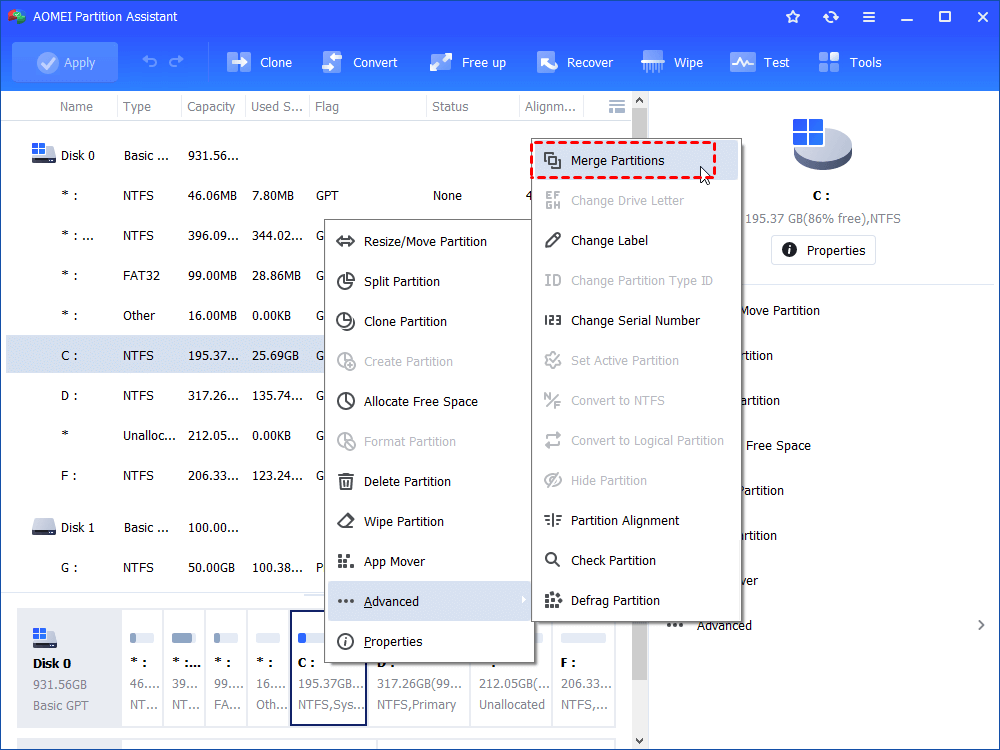 Merge non-adjacent partitions with AOMEI Partition Assistant