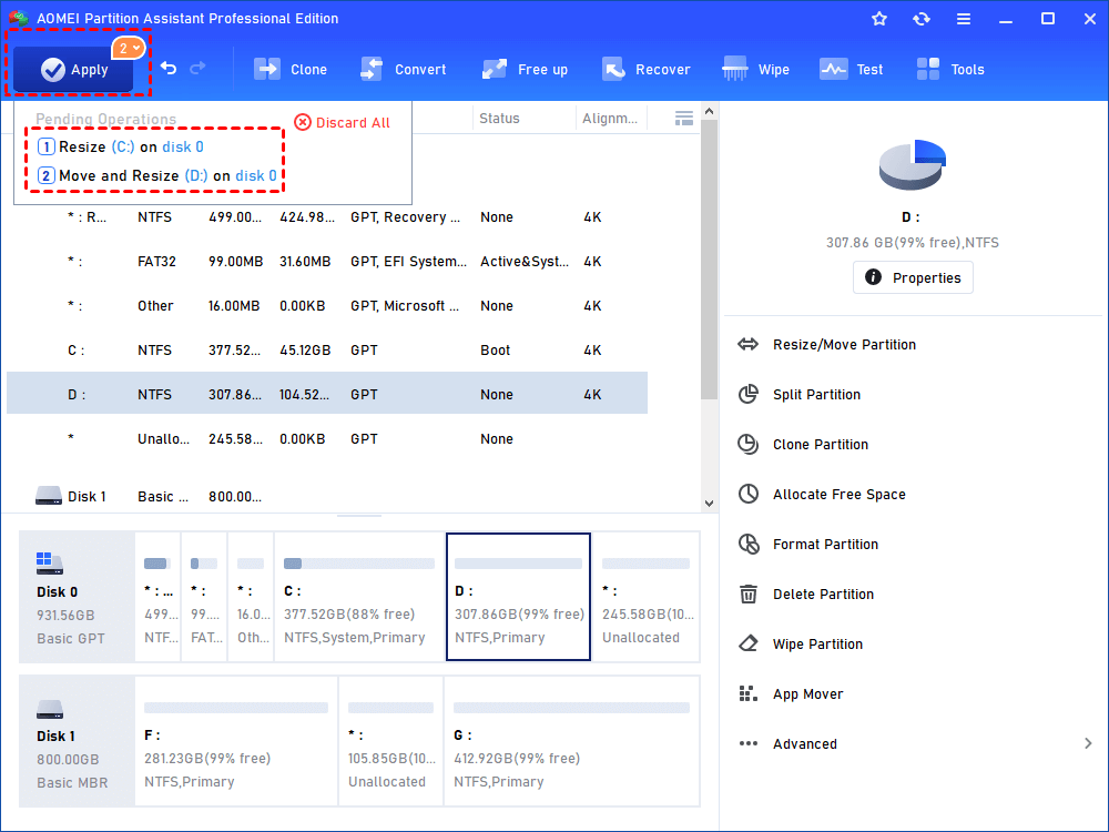 Compared with the above two Windows built-in tools, AOMEI Partition Assistant Professional has more advantages: