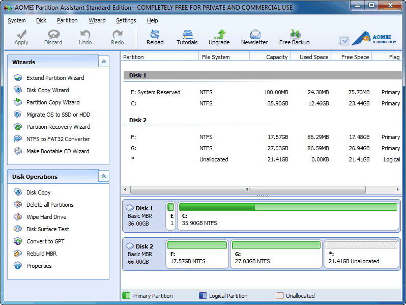 In addition, AOMEI software offers many other useful features to help you manage your disks and partitions better such as resizing/moving partitions, deleting large files, recovering lost files, and so on.