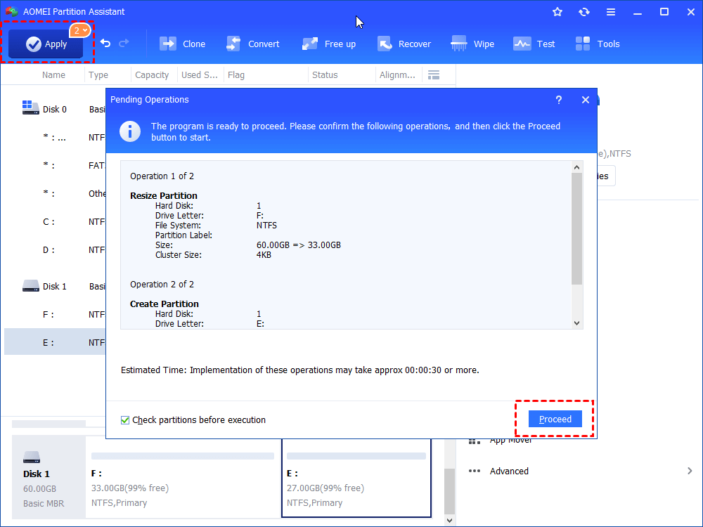 Step 6: You can create more partitions and resize them according to your need. After all operations, click “Apply” to execute.