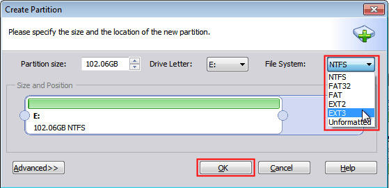 ✎If you create a partition with EXT2/EXT3/FAT file system, it might be recognized in Windows environment. Just create it and install the related OS on that partition.