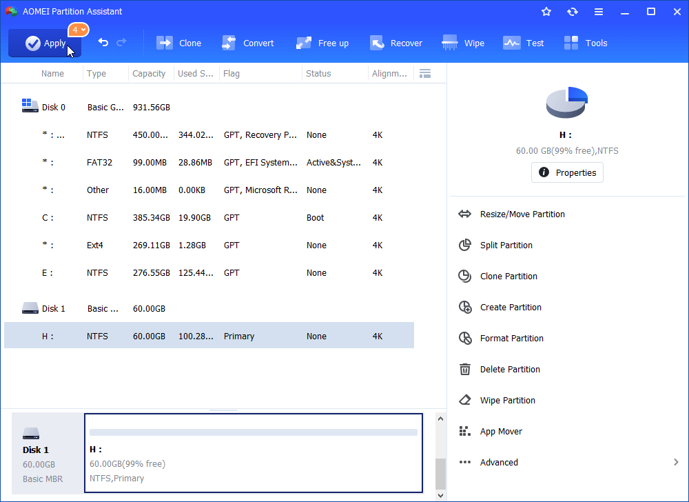 Step 5. At last, you can see the change on the main console, and click “Apply” > “Proceed” to commit it.