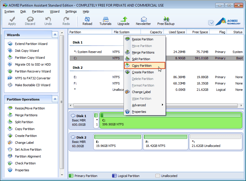 It offers clone system partition or the whole disk functions, which give the choice to only replace the C drive or migrate the whole disk, including OS and other software and data.
