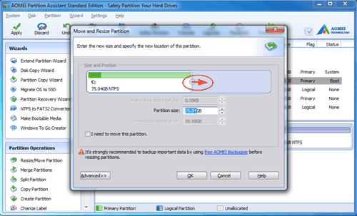 Solution 2: Resize C drive with free AOMEI Partition Assistant