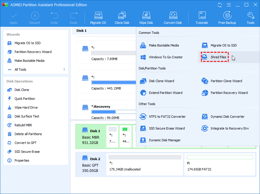 So, with a reliable tool, you can easily shred file with random data in Windows 10, 8, 7. Apart from the mentioned functions, the AOMEI Partition Assistant Professional also comes with many other features: clone partition, clone hard disk, merge partitions, split partitions, transfer OS to SSD, convert MBR and GPT without deleting partitions, etc.