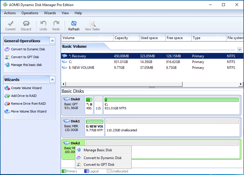 In addition to converting to a dynamic disk, it also supports dynamic disk management, which can help you manage dynamic disk volumes more effectively.