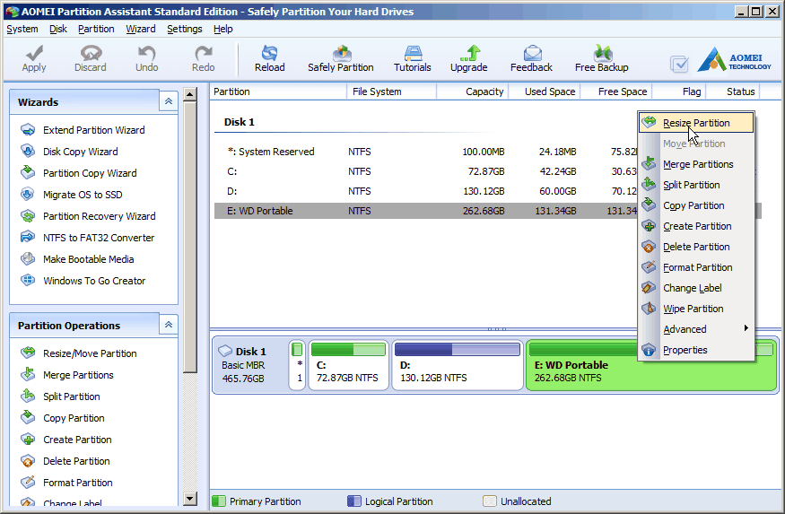 To increase size of C drive simply and easily, a third-party partition manager, AOMEI Partition Assistant Professional is highly recommended. It has “Allocate Free Space” function, allowing you to allocate free space from one partition to C drive effortlessly, if the system hard drive has no unallocated space. It has “Merge Partitions” function, which can add unallocated space into system partition C, even when the partition is before or non-adjacently behind C drive.