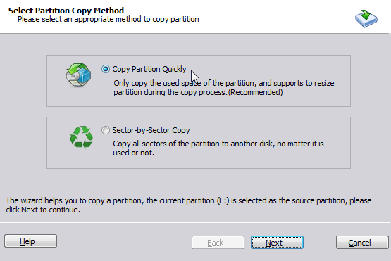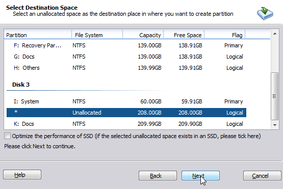 - If you select the "Sector-by-Sector Clone" mode, the unallocated space must be equal or larger than source partition. If you tick the option, it will be unable to resize the destination partition.