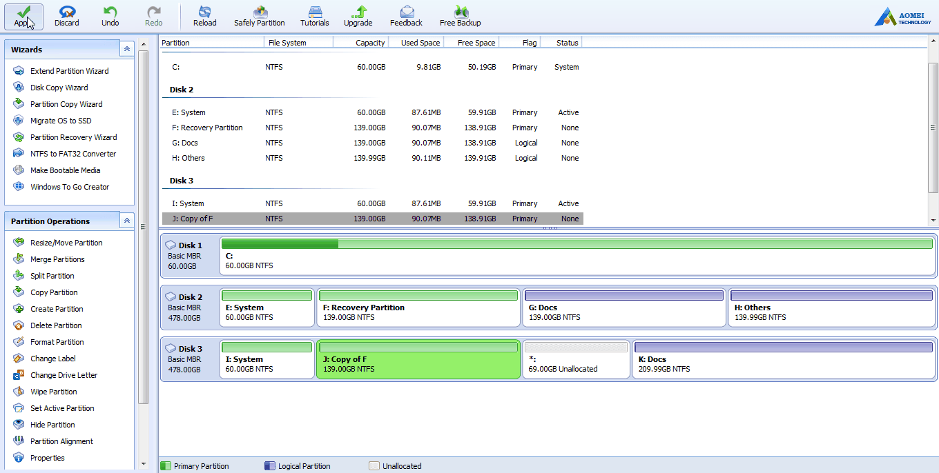 To complete HP Recovery partition copy effectively and securely, you can turn to powerful and professional third-party partition copy software – AOMEI Partition Assistant Standard. With strong technology support, it is able to help you not only to copy HP Recovery partition to SSD, HDD, or USB but also to copy data partition or clone C drive to a new SSD or HDD. With the user-friendly design of the interface, AOMEI Partition Assistant is easy to handle even for a green hand.
