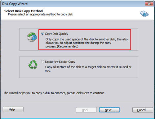 Step 3: Select the first method to copy only the used part. Surely you can choose the other one depending on your needs.