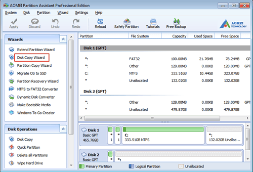 ②The free Standard version only supports cloning MBR disk to MBR disk. If you are planning to clone MBR to GPT, or GPT to MBR/GPT, you have to upgrade to the Professional version.