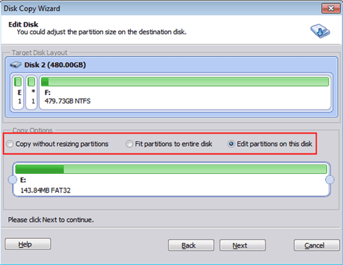 Step 6: You can edit all partitions before copying. Followed up is a note message that you need to acquire.