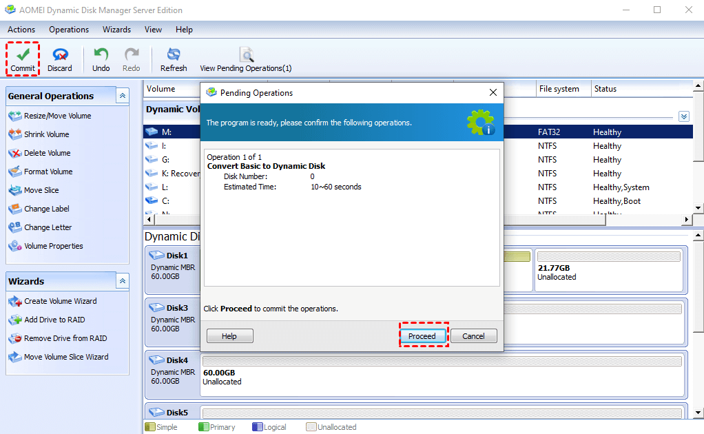 Apart from using Disk Management, you can also turn to AOMEI Partition Assistant Server. It has a professional dynamic disk manager, which can help convert a basic disk to a dynamic disk without losing data in all editions of Windows Server and Windows 10, 8, 7.