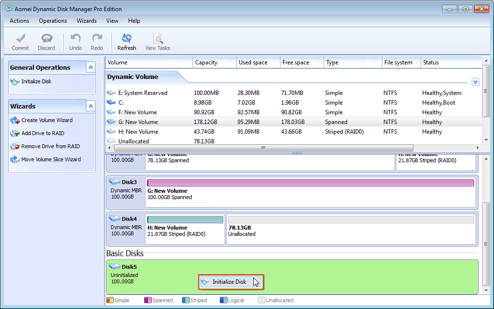 Apart from initializing disk, AOMEI Dynamic Disk Manager can also Resize/Move Volume, Convert to basic disk, Shrink volume and so on. Why not downloadand have a try!