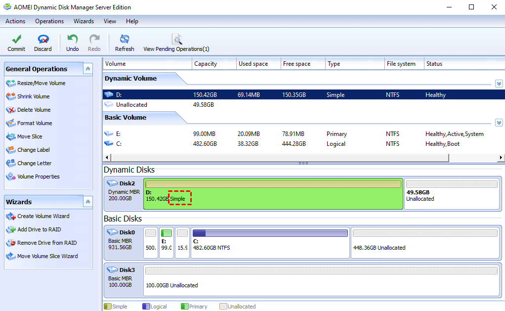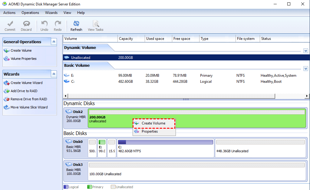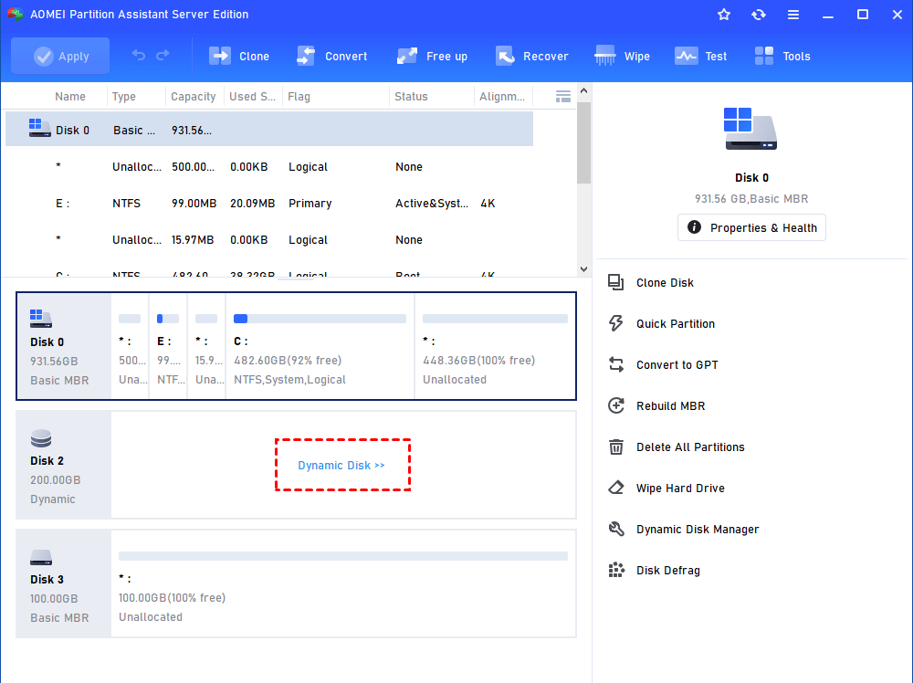 From above, we can know that different dynamic volumes allow you to do so much more than a basic disk. So, you may want to create dynamic volumes. But how to perform it? To make it as easy as possible, we recommend using AOMEI Partition Assistant Server. It provides a professional dynamic disk manager to help manage dynamic disk volumes effectively in all Windows PC and Windows Server operating systems. (PS.: It comes with a demo version for your free download and trial)