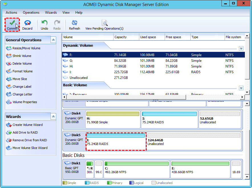 Step 4. You will preview the RAID-5 volume has been expanded. To save the changes, you need to click "Commit" on the toolbar.