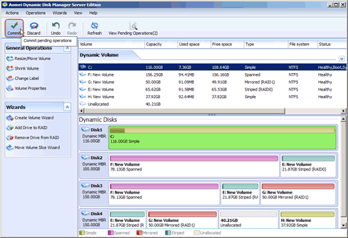 Step 6. After step 5, you will find the system volume has been extended. Click “Commit” on the toolbar to take all the pending operations into effect.