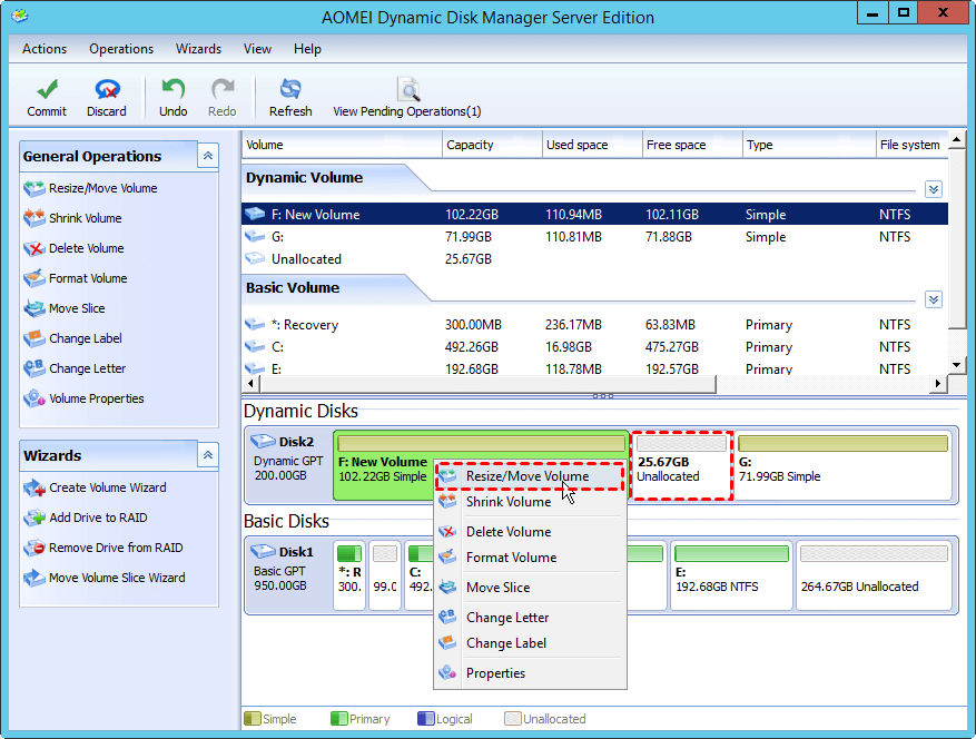 Need to extend dynamic system volume in Windows Server 2008? AOMEI Dynamic Disk Manager can help you resize, move, extend dynamic volume and keep data intact.