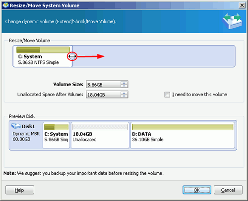 Why merge unallocated space to C drive dynamic disk on Windows Server 2003?