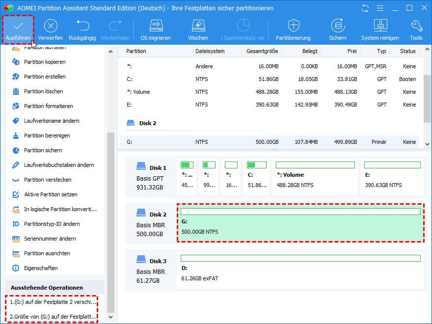 Schritt 3. Schließlich klicken Sie auf Ausführen, um die ausstehenden Operationen zu bestätigen.
