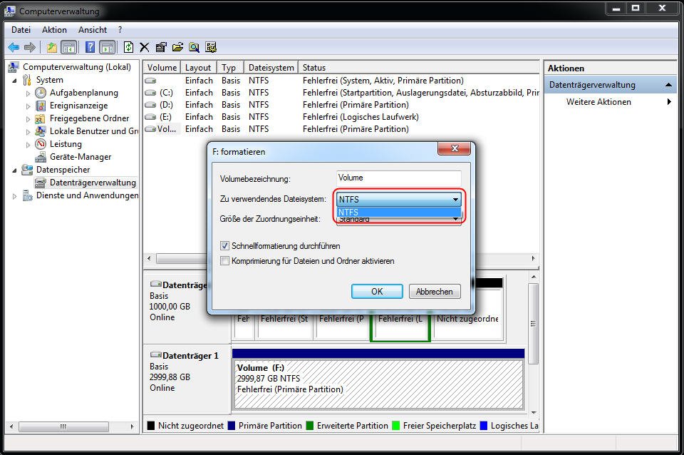 Ist es möglich, eine 3-TB-Festplatte von NTFS in FAT32 zu formatieren?