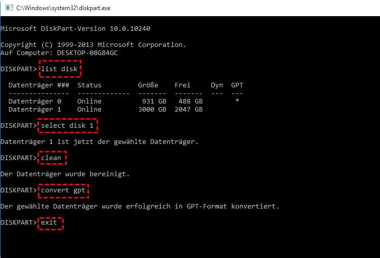 ▪ Methode B. 3 TB Festplatte zu GPT über Diskpart konvertieren