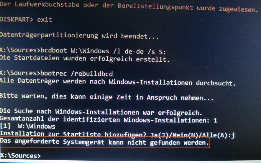 Wie den Fehler „bootrec /rebuildbcd Das angeforderte Systemgerät kann nicht gefunden werden“ zu beheben?